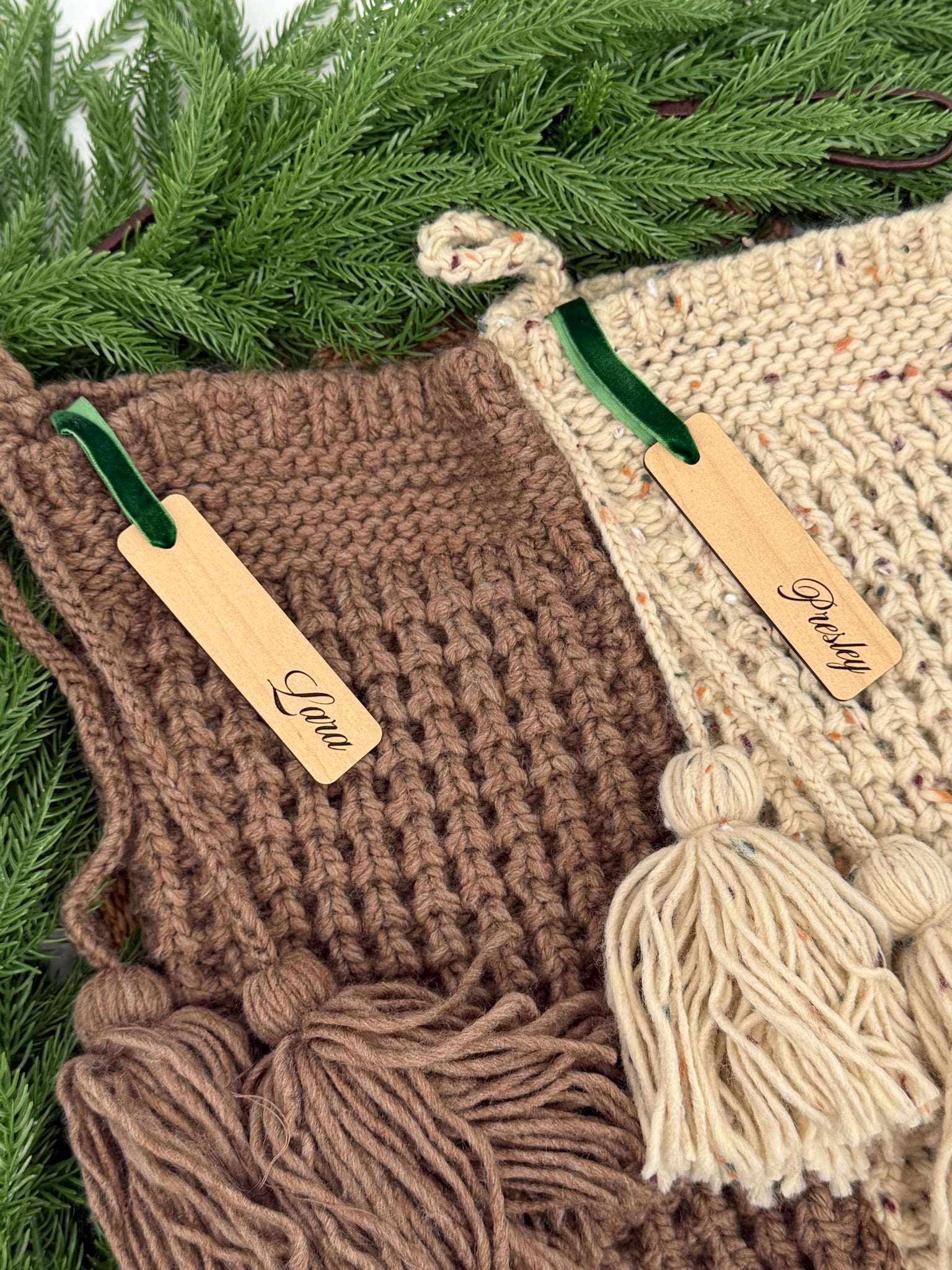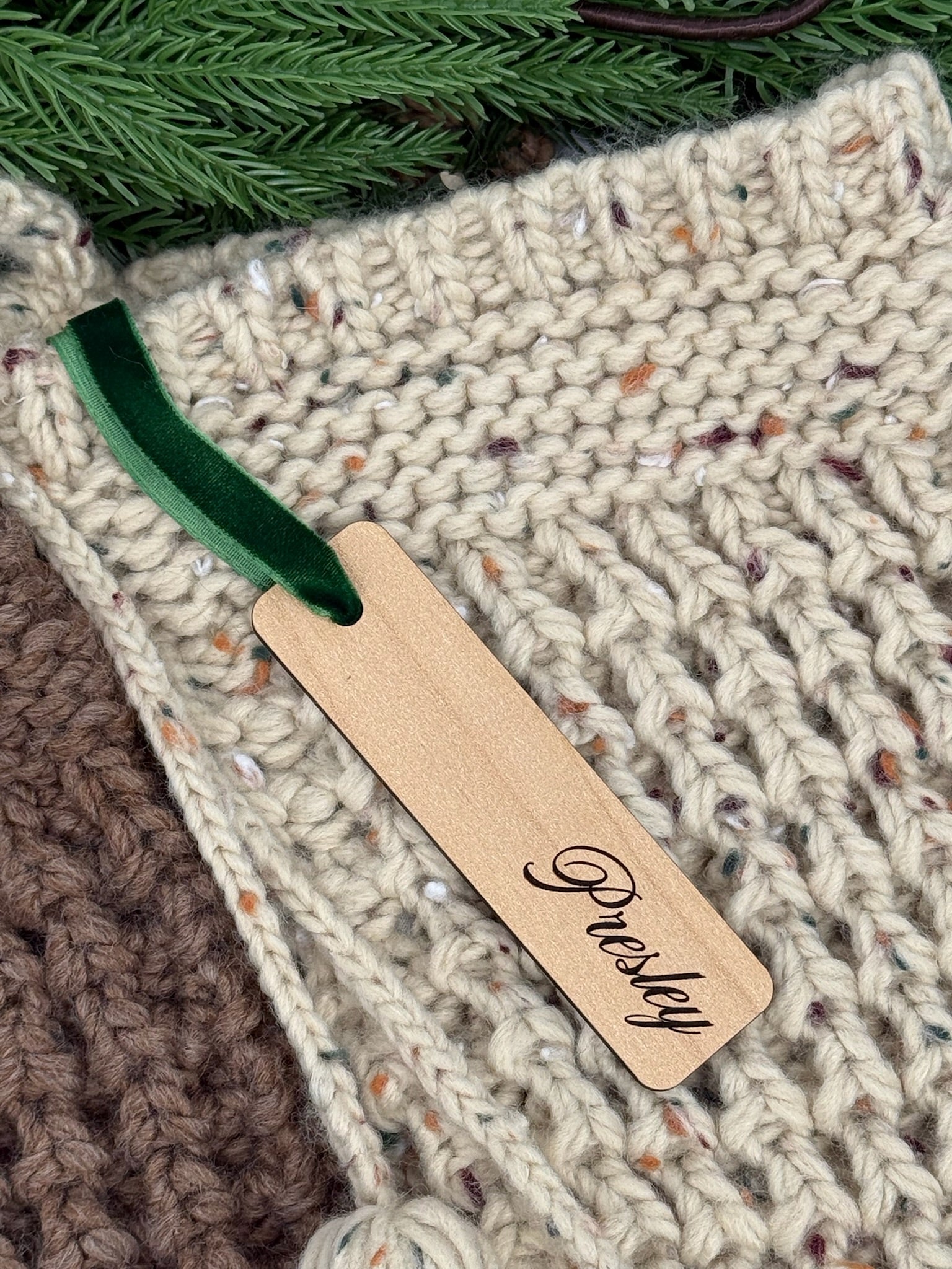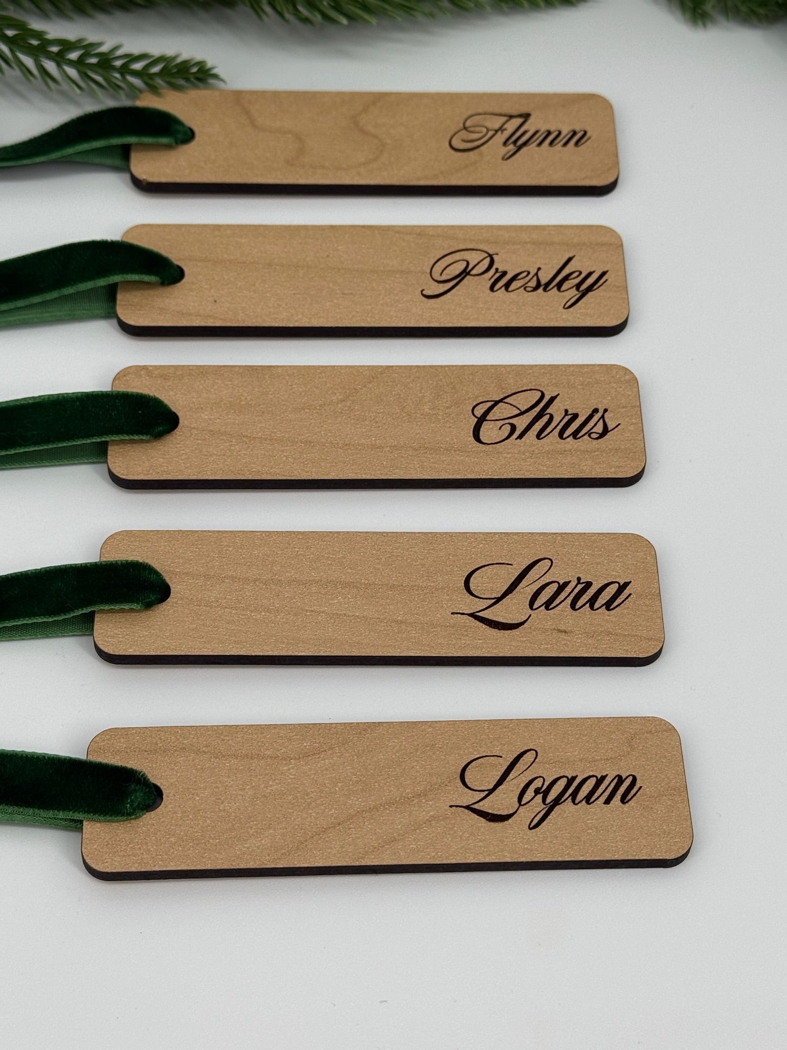Add a personalized touch to your holiday gifting or décor with our Personalized Holiday Name Tag! Crafted from high-quality 1/8" wood, this custom tag measures 3.75" x 1" — the perfect size for stockings, presents, or place settings.